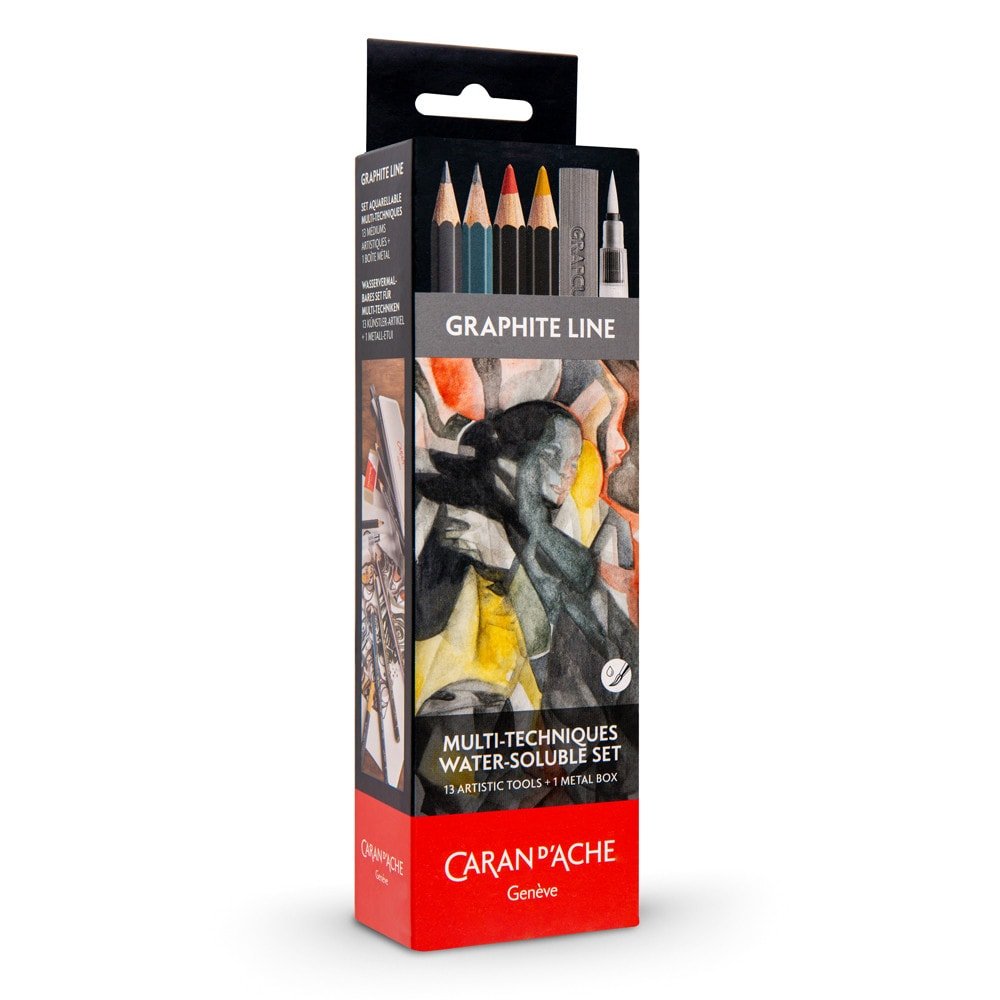 DETAILS OF THE MULTI-PRODUCT SET 2 Technalo hardnesses (6B, 3B) + 3 Technalo RGB (Red 575, Green 719, Blue 159) 3 Grafcube RGB (Red 575, Green 719, Blue 159) 2 Museum Aquarelle (yellow ochre, blood red) 3 accessories (brush, eraser, pencil sharpener)